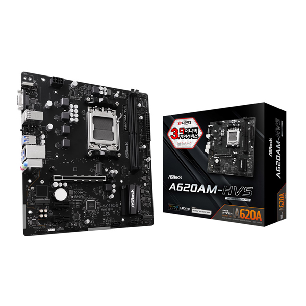 CPU소켓-라이젠 AM5 세부칩셋-A620A 폼팩터-M-ATX 메모리 종류-DDR5 메모리 용량-최대 128GB 메모리 슬롯 수-2개 PCI-E-3개 SATA포트-2개 M.2 슬롯-2개 USB2.0 헤더-2개 USB3.0 헤더-1개 USB-C 헤더-1개 5V ARGB 헤더-2개 사운드 채널-7.1ch 그래픽 출력단자-HDMI D-SUB 후면 USB 총 단자수-8개 후면단자 종류-USB 2.0 USB 3.0 네트워크 사양-기가비트랜