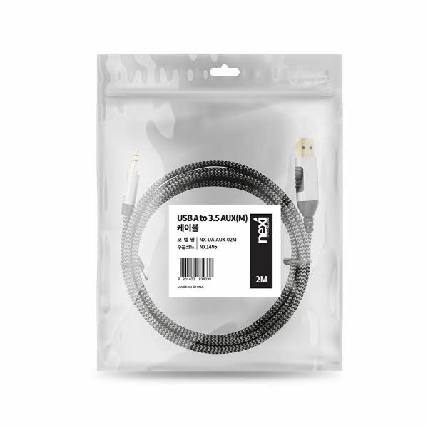 넥시 NEXI NX-UA-AUX-02M [NX1495] USB to 3.5 AUX(M) 스테레오 케이블 (2m)