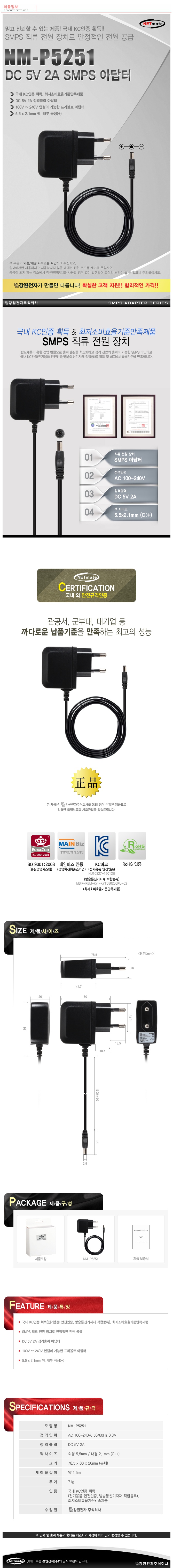 강원전자 넷메이트 NM-P5251 SMPS 아답터 (5V/2A)