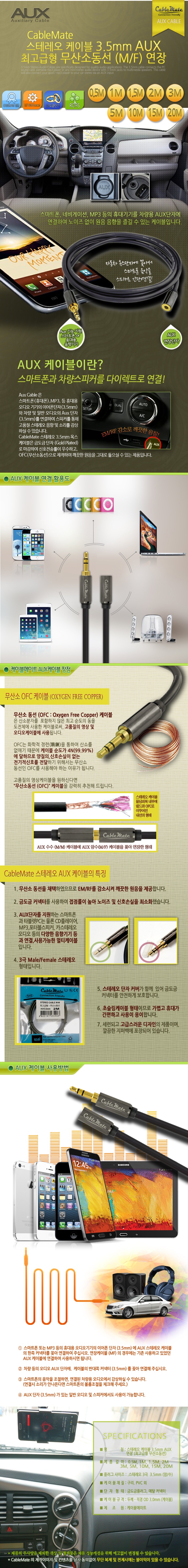 케이블메이트 최고급형 무산소동선 스테레오 케이블 (3M/연장케이블)