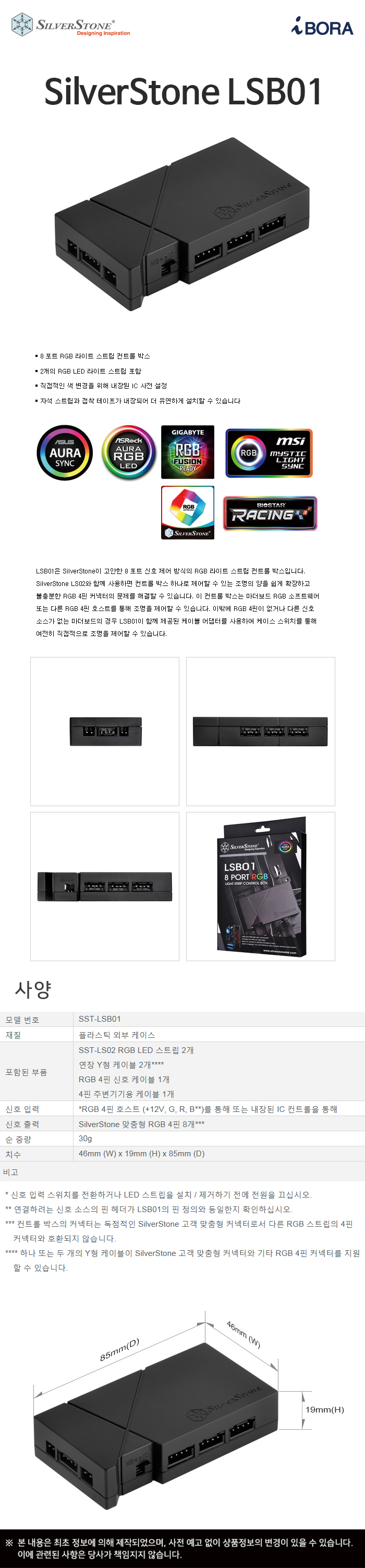 | 주요사양 | 전원단자-4핀 부가기능-RGB 싱크연동 |